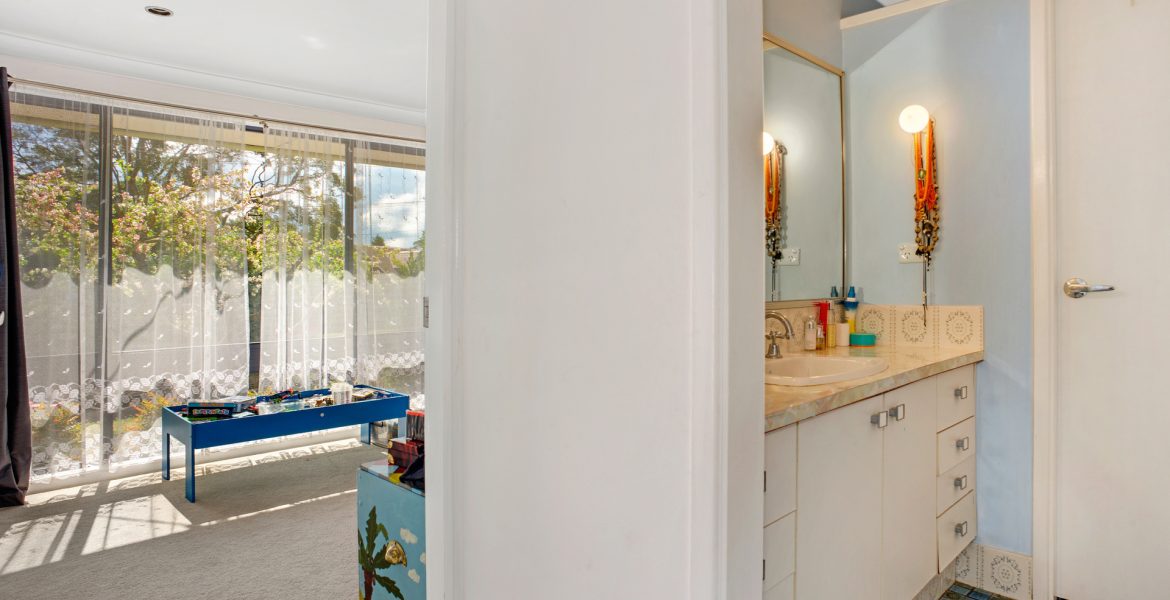 3 bedrooms, all with robes, 1 bath, separate vanity area and separate loo.
