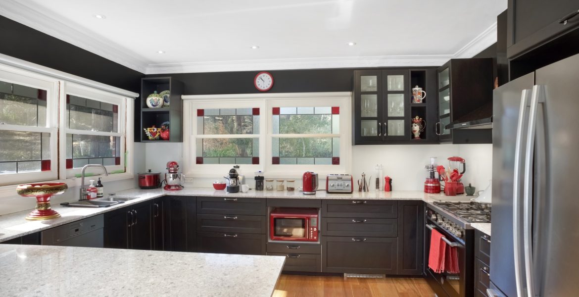 The expansive very smart kitchen features caesarstone benches and is well equipped for entertaining.