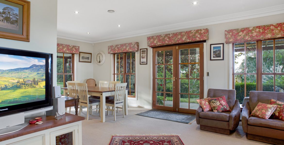Beautiful separate living areas, a prized north-east aspect with views from all rooms, 2.7 metre-high ceilings throughout and a slow combustion wood heater.