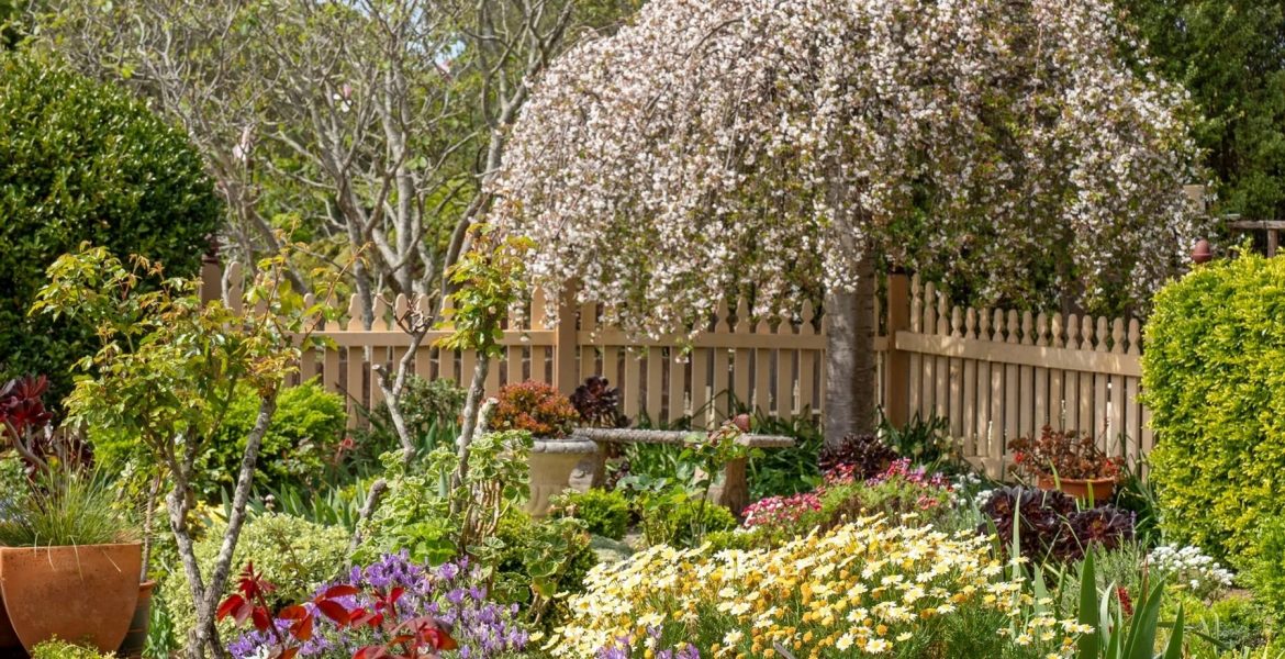 Outdoors, the lovely front garden greets with clever plant selection & presentation.