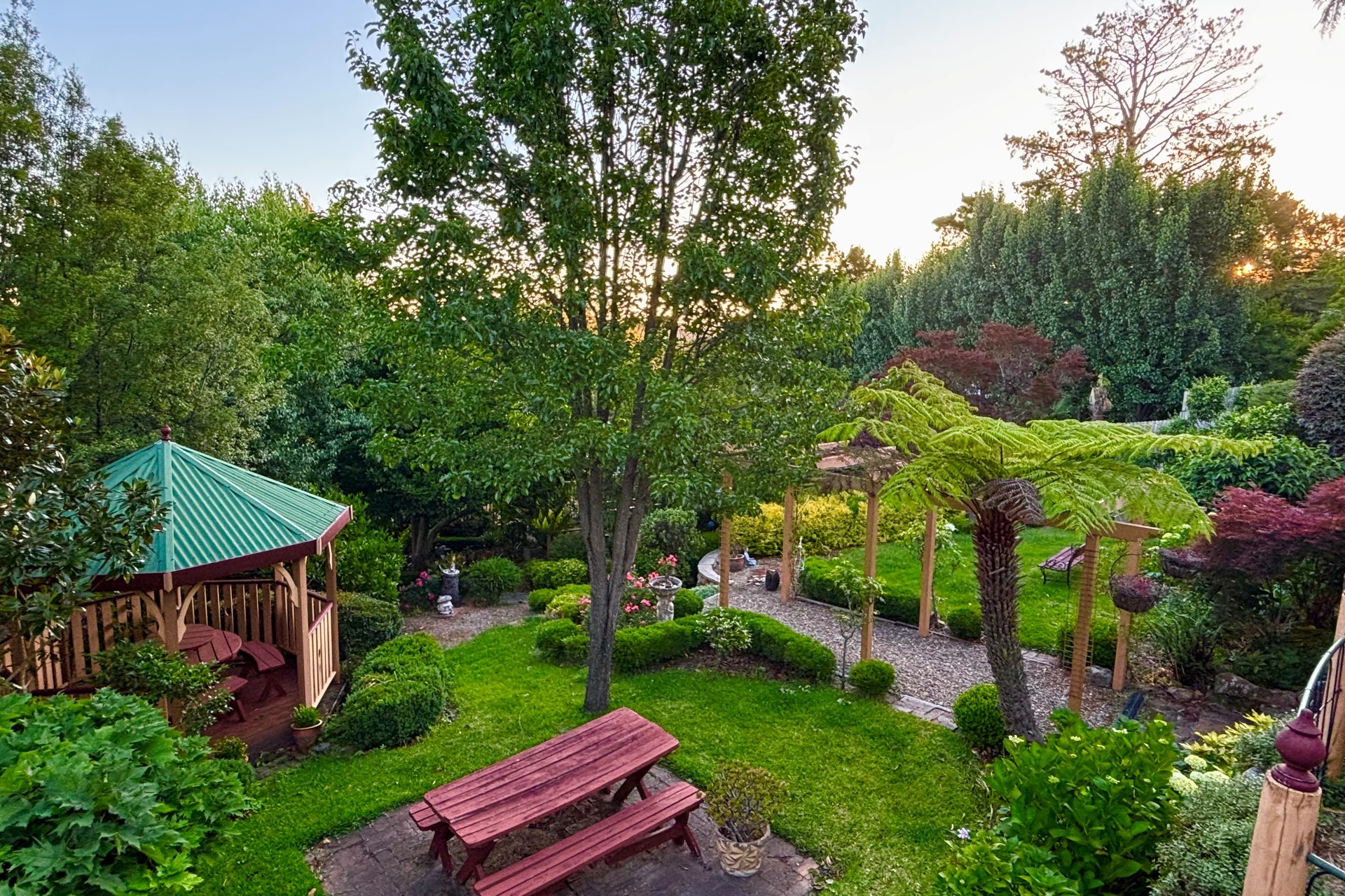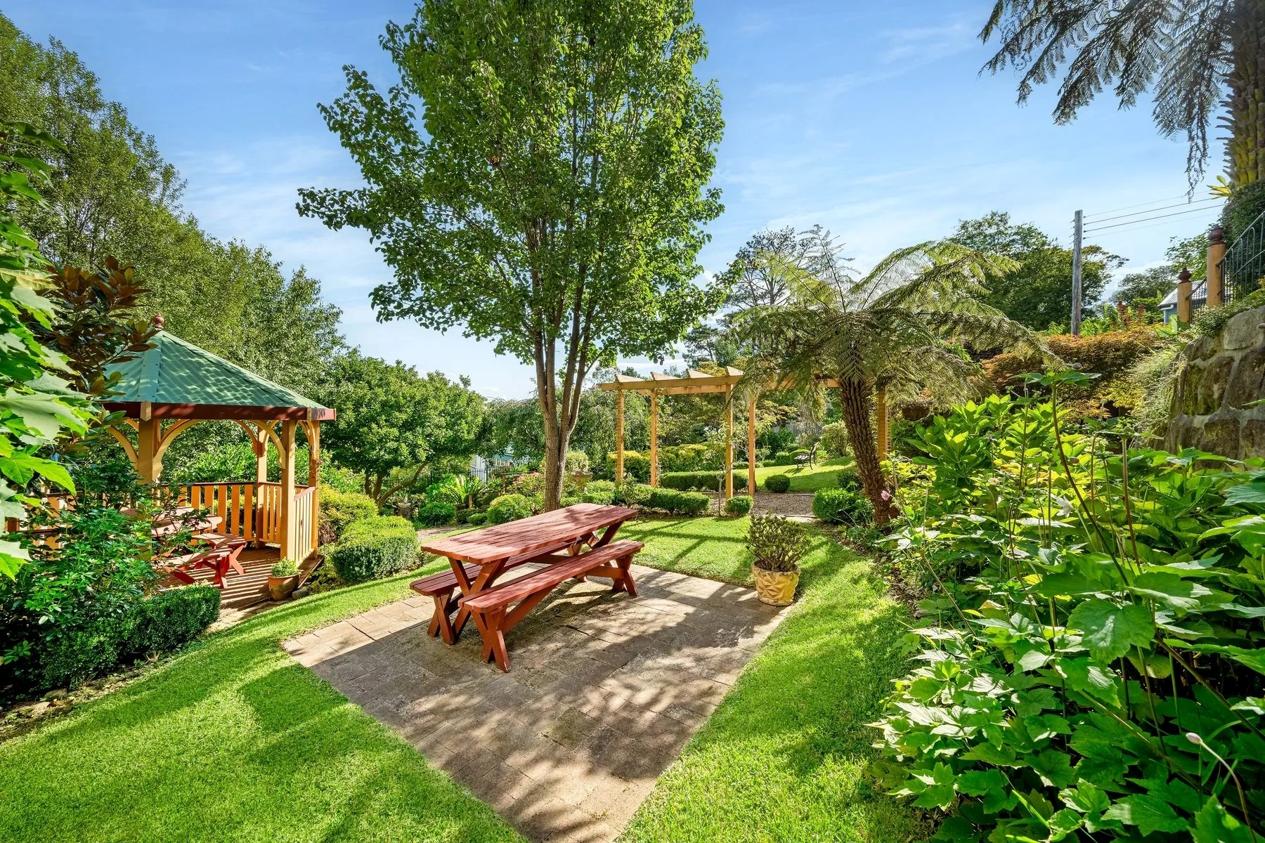 The rear garden embodies a Tea House, ideal for breakfast or that intimate lunch.